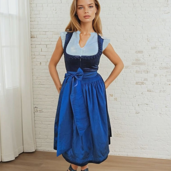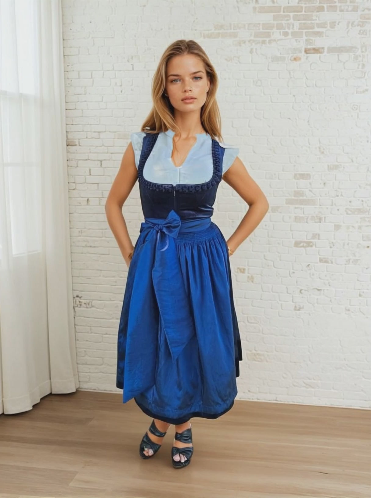 Dieses moderne Samtdirndl in edlem Dunkelblau vereint zeitlose Eleganz mit aktuellem Dirndltrend 2025. Der hochwertige Samtstoff sorgt für einen luxuriösen Look und angenehmen Tragekomfort, perfekt für festliche Anlässe. Mit seinem modernen Schnitt setzt es stilvolle Akzente und lässt Sie bei jedem Event strahlen. Ein Must-have für alle, die Tradition und zeitgemäße Mode harmonisch verbinden möchten.