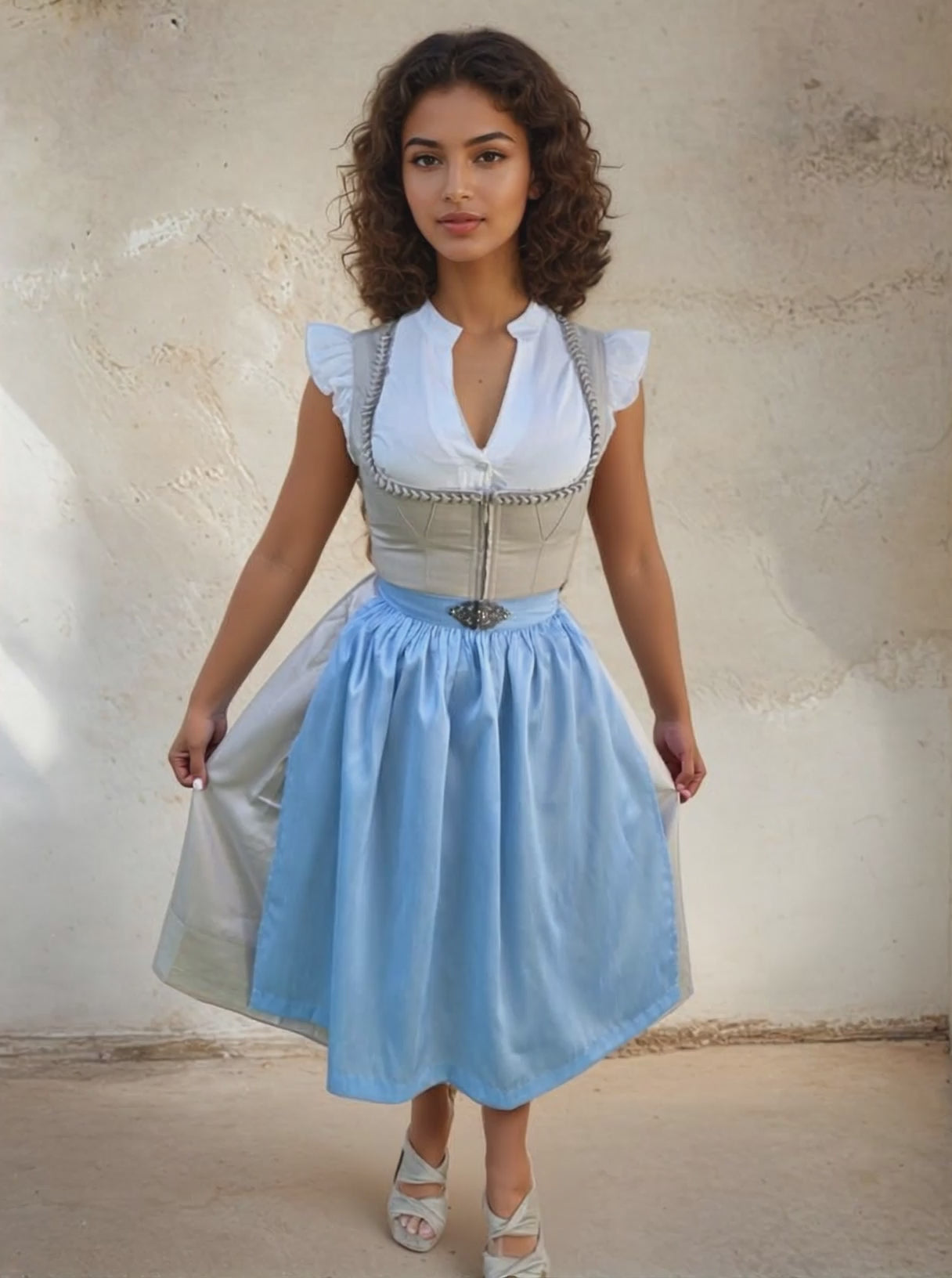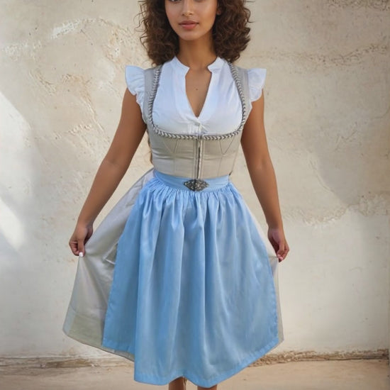 Dieses traditionelle Midi-Dirndl besticht durch seine elegante Leinenoptik des Mieders und bietet mit zwei Schürzen in zartem Rosa und Hellblau vielseitige Stylingmöglichkeiten. Perfekt für festliche Anlässe oder traditionelle Feiern, verbindet es klassischen Charme mit zeitloser Eleganz. Ein Must-have für alle, die Tradition und Stil harmonisch vereinen möchten.
